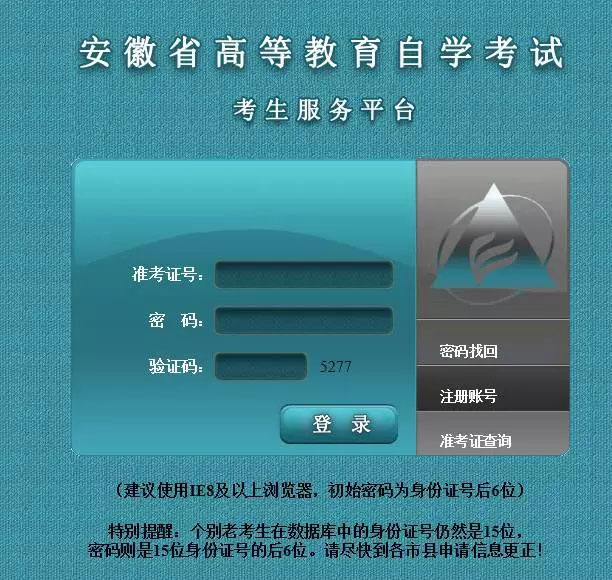 二、登錄報(bào)名系統(tǒng):(http://zk.ahzsks.cn)老考生及已成功注冊獲取準(zhǔn)考證號碼的新考生均從此頁面進(jìn)入報(bào)名系統(tǒng)