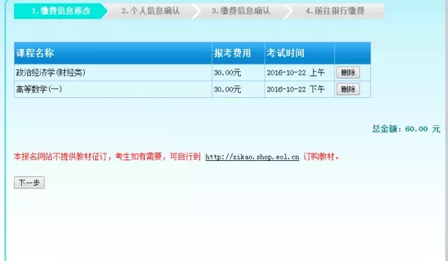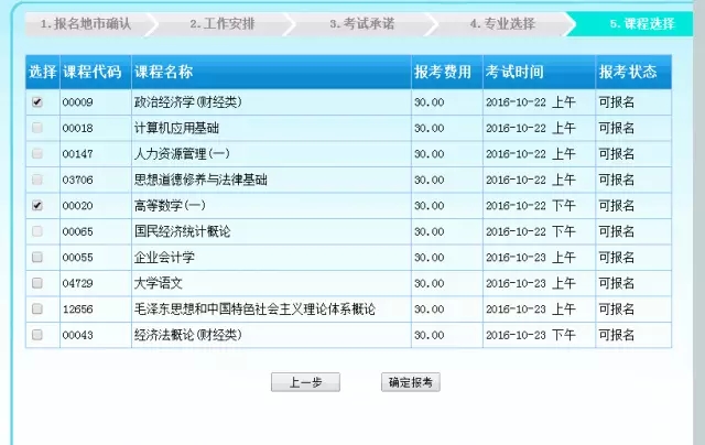 這一步提示確認(rèn)報(bào)考課程